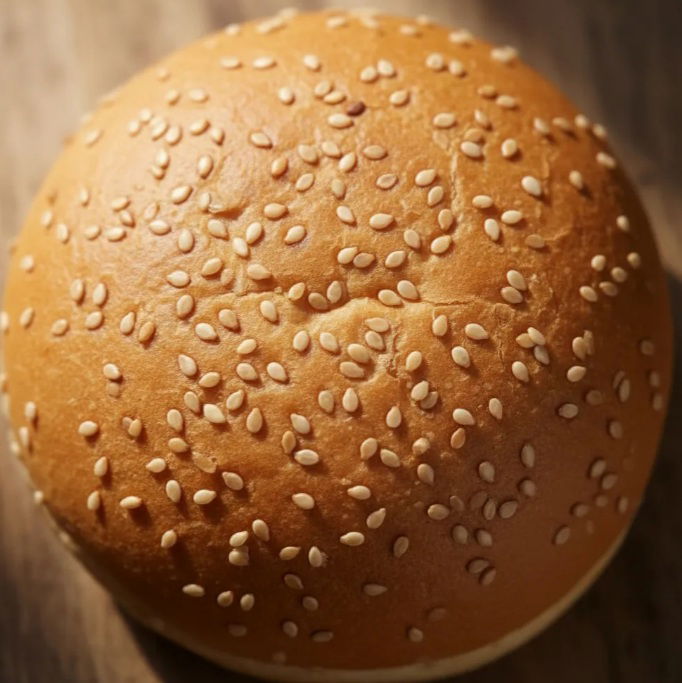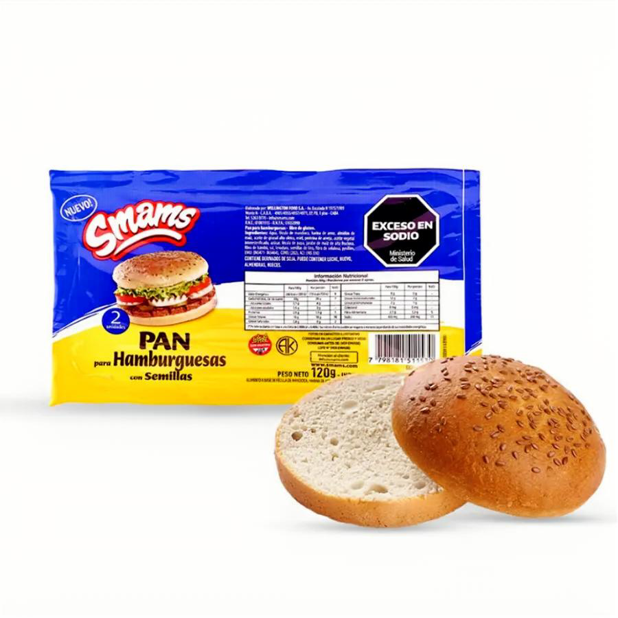 Trae 2 panes para abrir. O sea puedes hacerte 2 hamburguesas. Tiene semillas en su capa superior